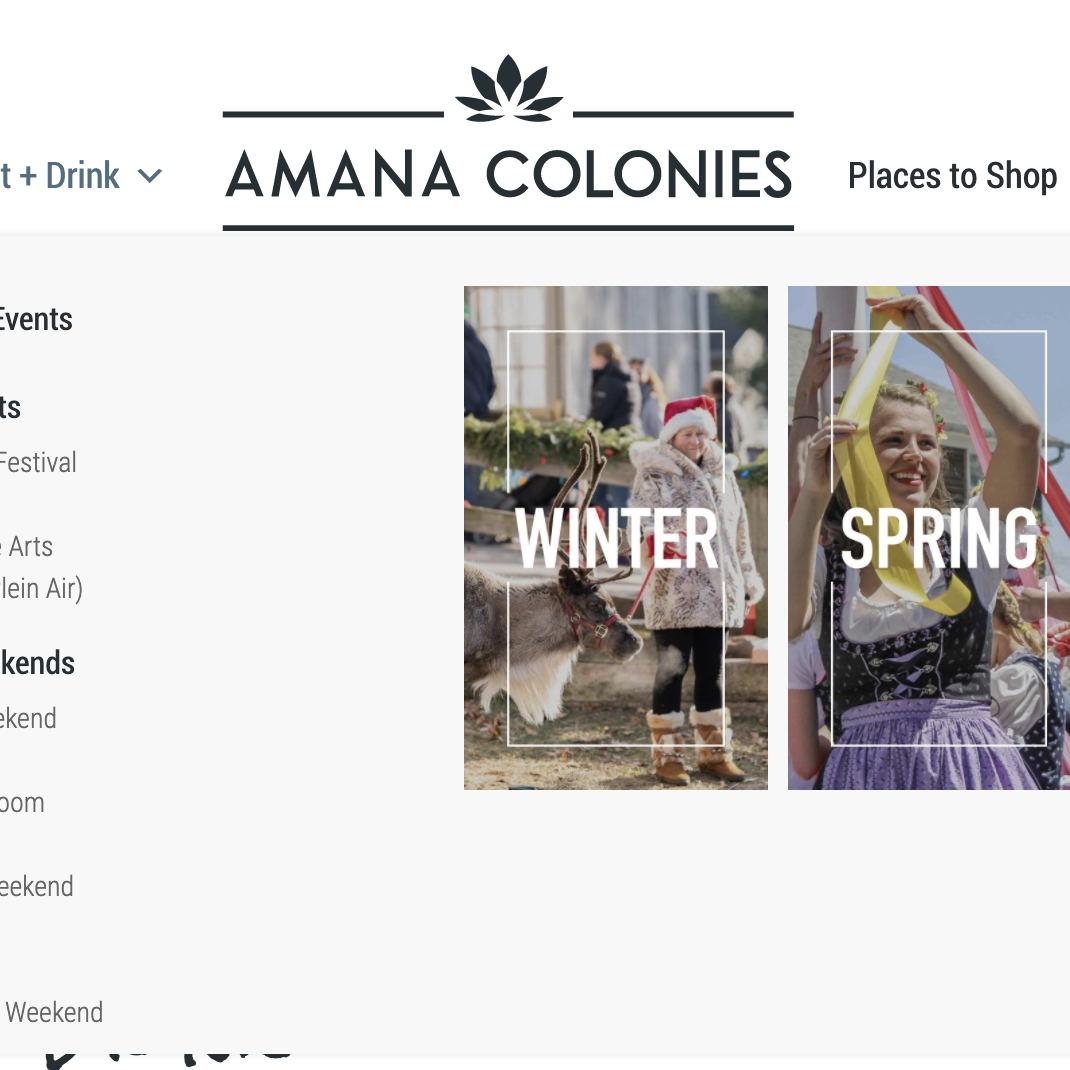 Amana Colonies is a unique German community in the heart of Iowa. Over 90 years, Amana Colonies has grown from a quaint communal town to a destination for food, festivals, and fun.